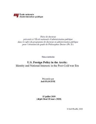 Plouffe, Joël (2020). U.S. foreign policy in the Arctic : identity and national interests in the Post-Cold war era. Thèse. École nationale d'administration publique (ENAP), 526 p.