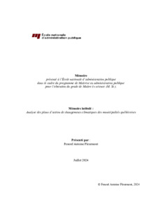 Fleurmont, Fenord Antoine (2024). Analyse des plans d’action de changements climatiques des municipalités québécoises. Mémoire. École nationale d'administration publique (ENAP), 94 p.