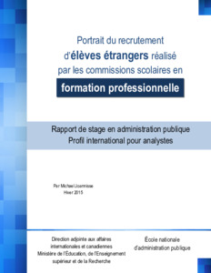 Joannisse, Michael (2015). Portrait du recrutement d’élèves étrangers réalisé par les commissions scolaires en formation professionnelle. 80 p.