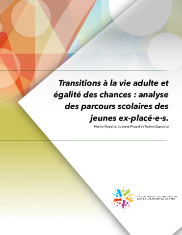 Ce rapport présente un portrait de différents enjeux et défis liés à la scolarisation des jeunes ex-placé·e·s jusqu’à 23 ans ainsi que des défis vécus dans d’autres sphères de leur vie. Il a été réalisé par le volet Santé et bien-être de la Chaire-réseau de recherche sur la jeunesse du Québec. La recherche à la base de ce rapport mobilise un devis quantitatif; elle a été est le fruit du jumelage de données issues des ministères de l’Éducation (MEQ) et de l’Enseignement supérieur (MES) avec les données de trois vagues de l’Étude sur le devenir des jeunes placés (EDJeP) et d’autres sources de données administratives. L’Étude longitudinale sur le devenir des jeunes placés (EDJeP) est représentative des parcours de 1 136 jeunes ayant connu un placement des services de la protection de la jeunesse.