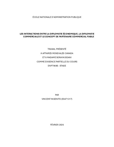 Ingenito, Vincent (2026). Les interactions entre la diplomatie économique, la diplomatie commerciale et le concept de partenaire commercial fiable. 39 p.